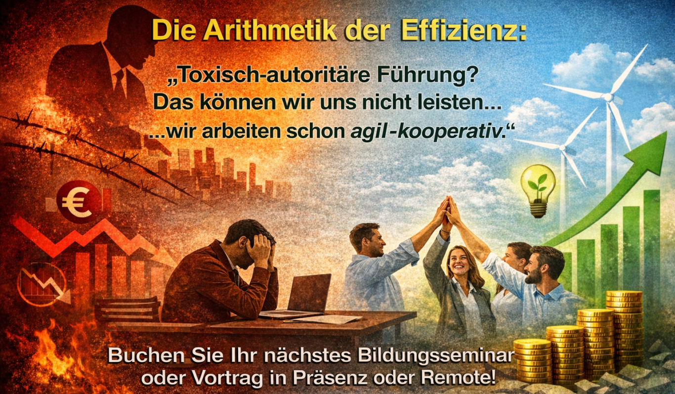 Bildungsseminar oder Vortragsreihe: Die Arithmetik der Effizienz- ,,Toxisch-autoritäre Führung? Das können wir uns nicht leisten… wir arbeiten schon agil-kooperativ.“