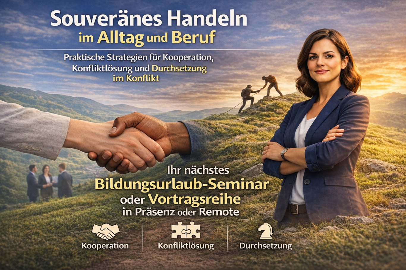 Bildungsseminar oder Vortragsreihe: "Handeln im Alltag und Beruf – Praktische Strategien für Kooperation, Konfliktlösung und Durchsetzung im Konflikt"